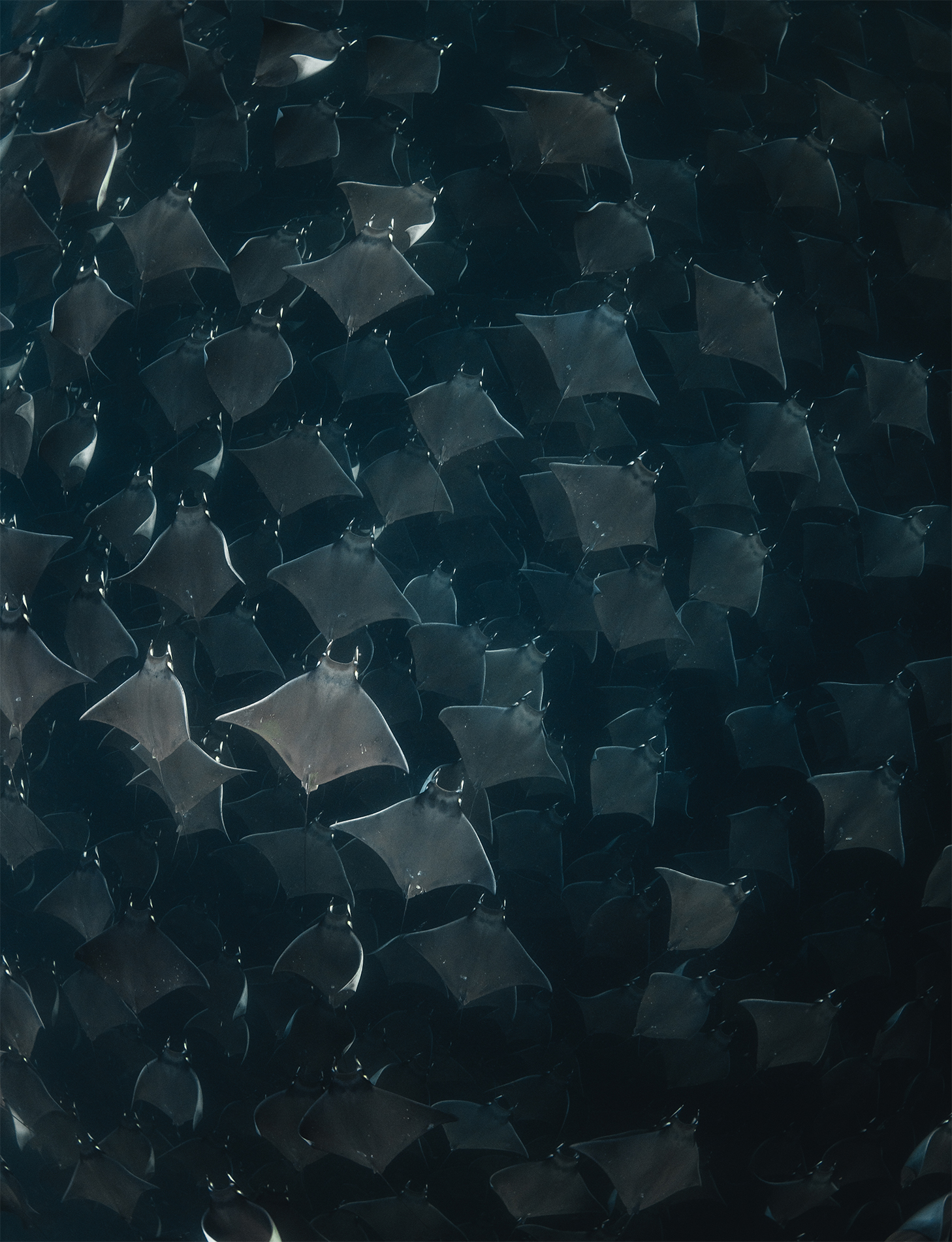 En el verano, miles de móbulas se agrupan en las costas de Baja California Sur, formando la mayor agregación de esta especie en el mundo. A este espectáculo natural se suman diversas especies de cetáceos, que migran por el Pacífico ofreciendo encuentros inolvidables sobre y bajo la superficie.