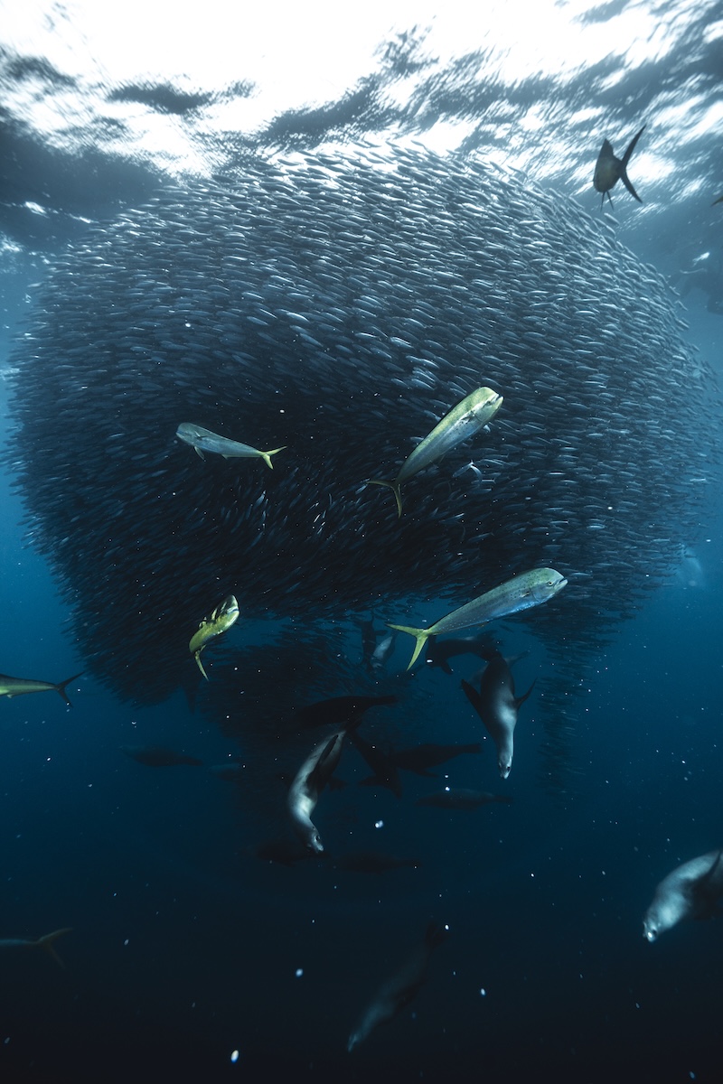 Al final de cada año se generan agregaciones de sardinas y pequeñas macarelas en la costa pacífica de la Baja California Sur.