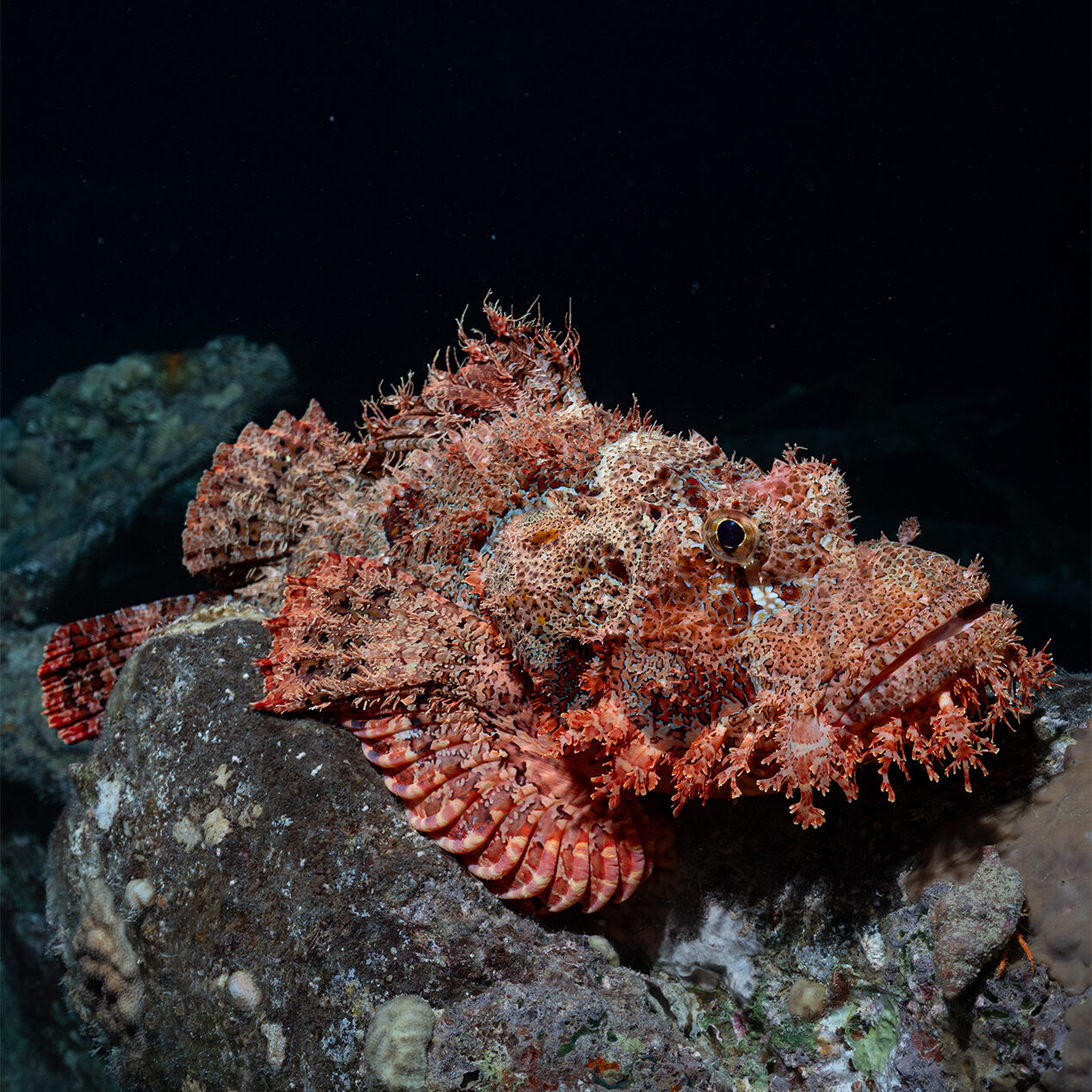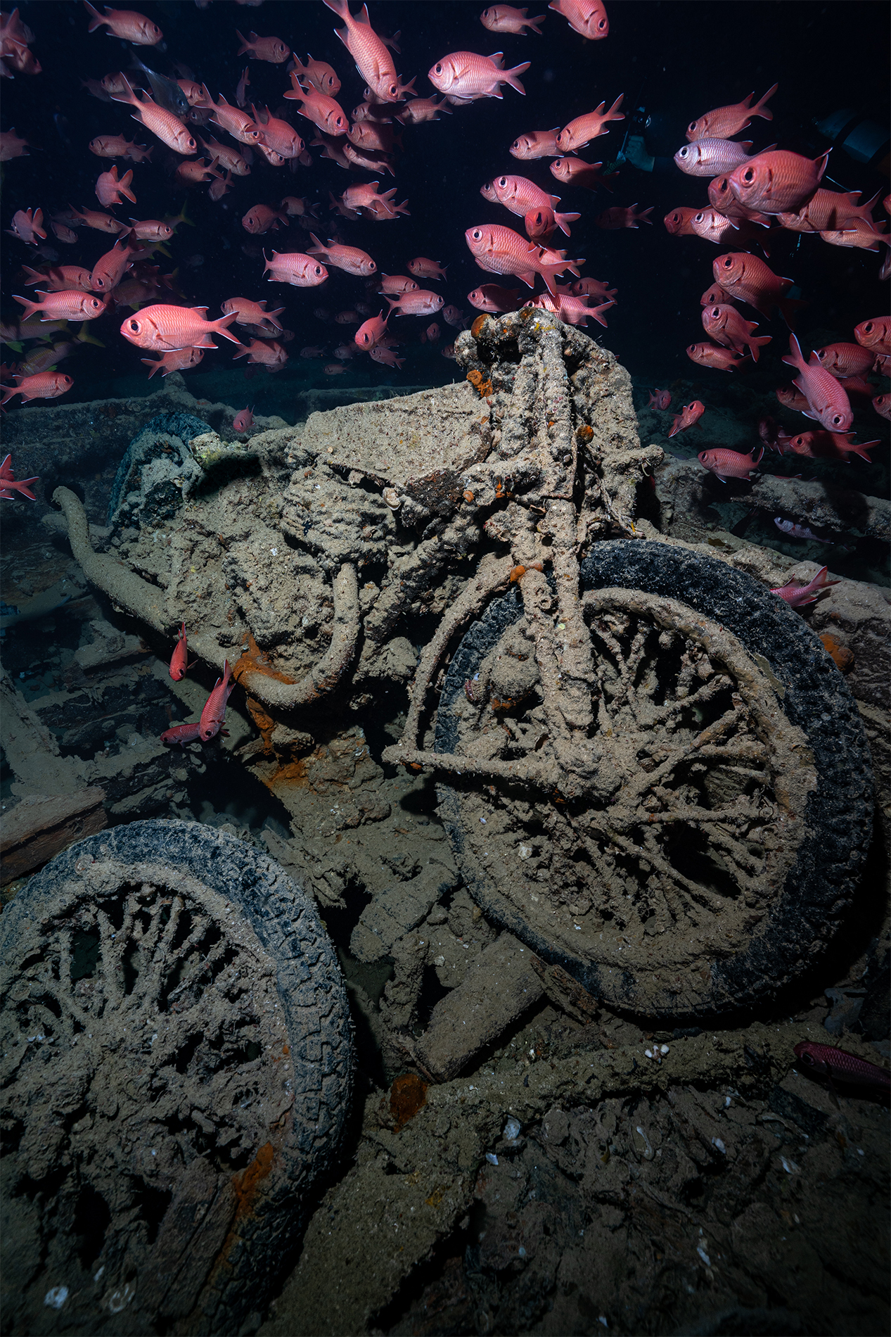 murciélago, coloridos peces payaso entre anémonas y bancos de pargos y jureles que llenan de movimiento los arrecifes. Incluso en los pecios como el SS Thistlegorm o el Giannis D, la vida marina se despliega en todo su esplendor, creando escenarios impresionantes bajo el agua.