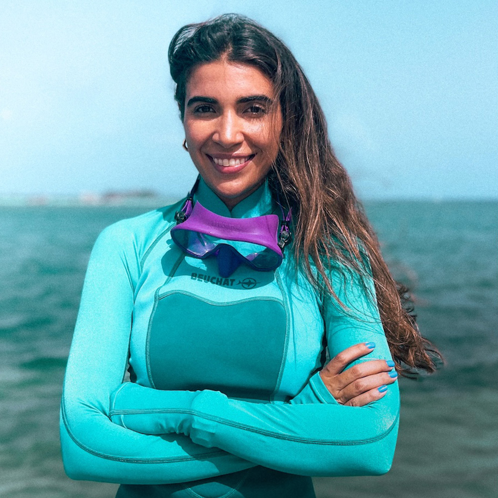 Isleña raizal, diseñadora, buzo, apneista y sirena, con una relación con el océano desde la cuna. Nathi es amante de la naturaleza, la fotografía y conectar con personas.